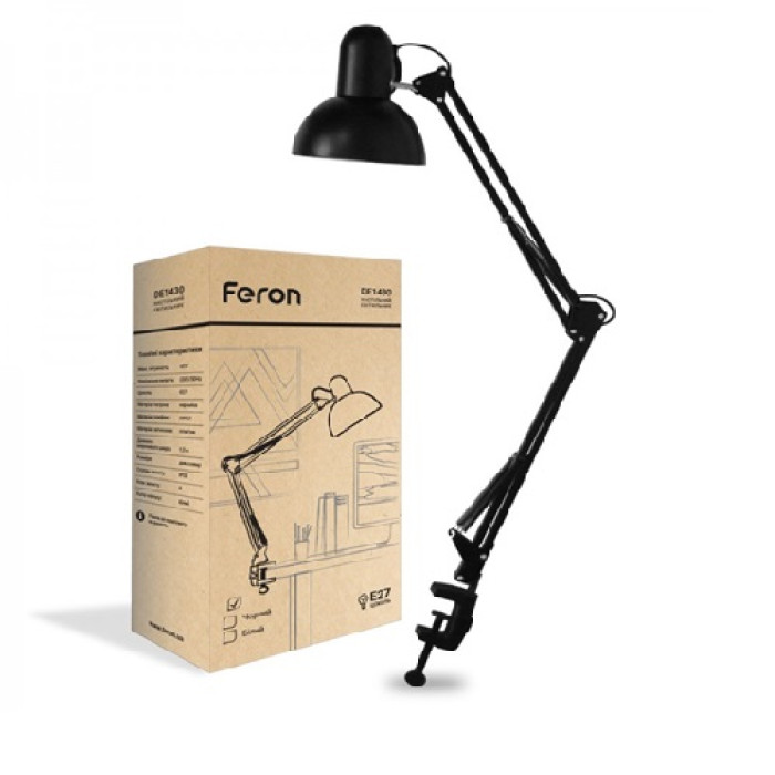 Купить Настольный светильник Feron DE1430 на струбцине под лампу Е27 с доставкой по Украине в магазине все для электрики Kabelpro